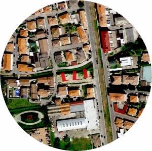 Foto aerea da google maps, Super-Sbalzi sul Roggione, via Asiago angolo via Cadore a Vercelli