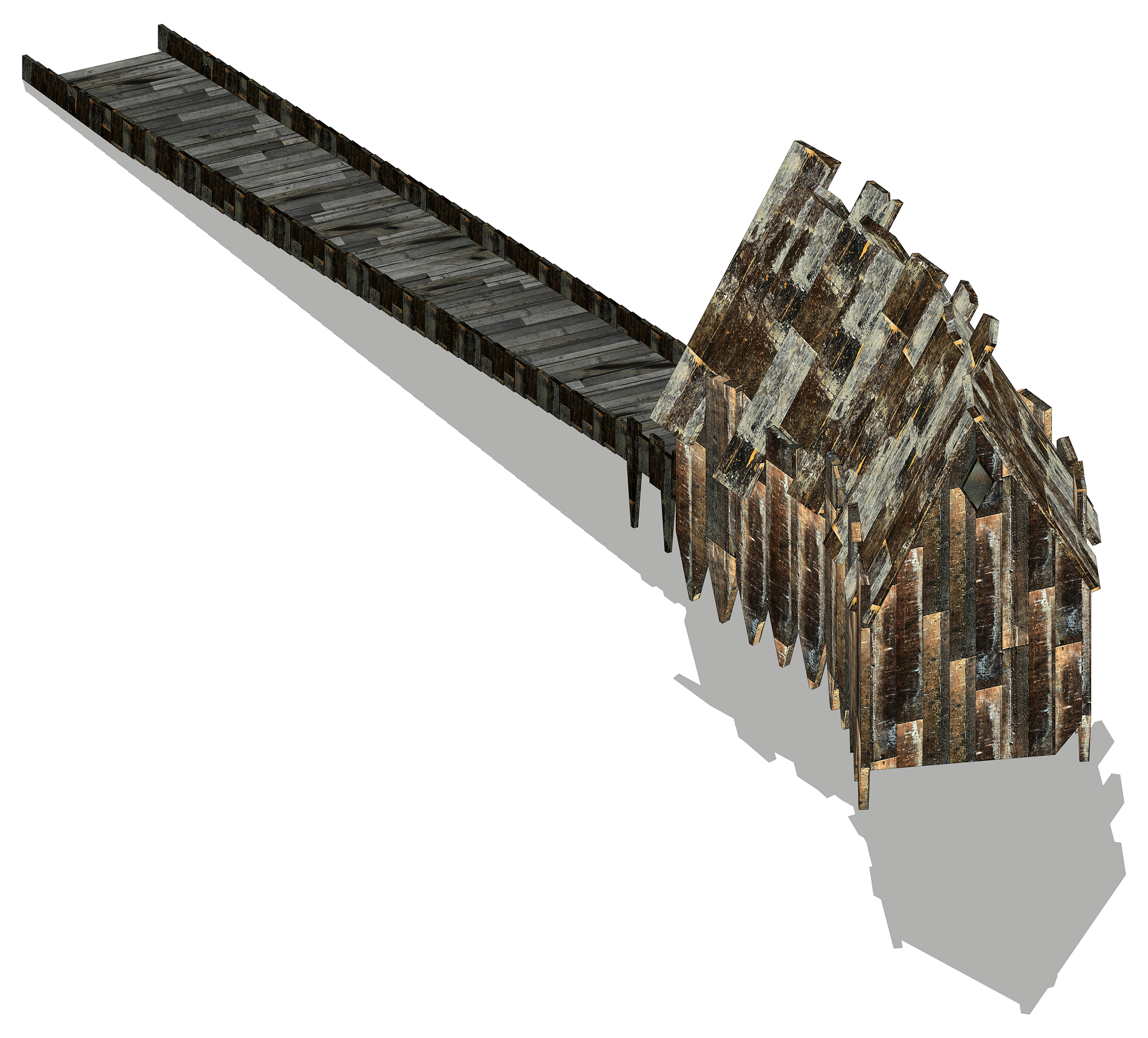 - Prospettiva della casa delle 2 tartarughe. Lato della rampa, con proiezione delle ombre.
