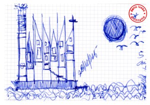 - Esile struttura su trespoli in viaggio nel mare. Disegno 8 cm x 5 cm